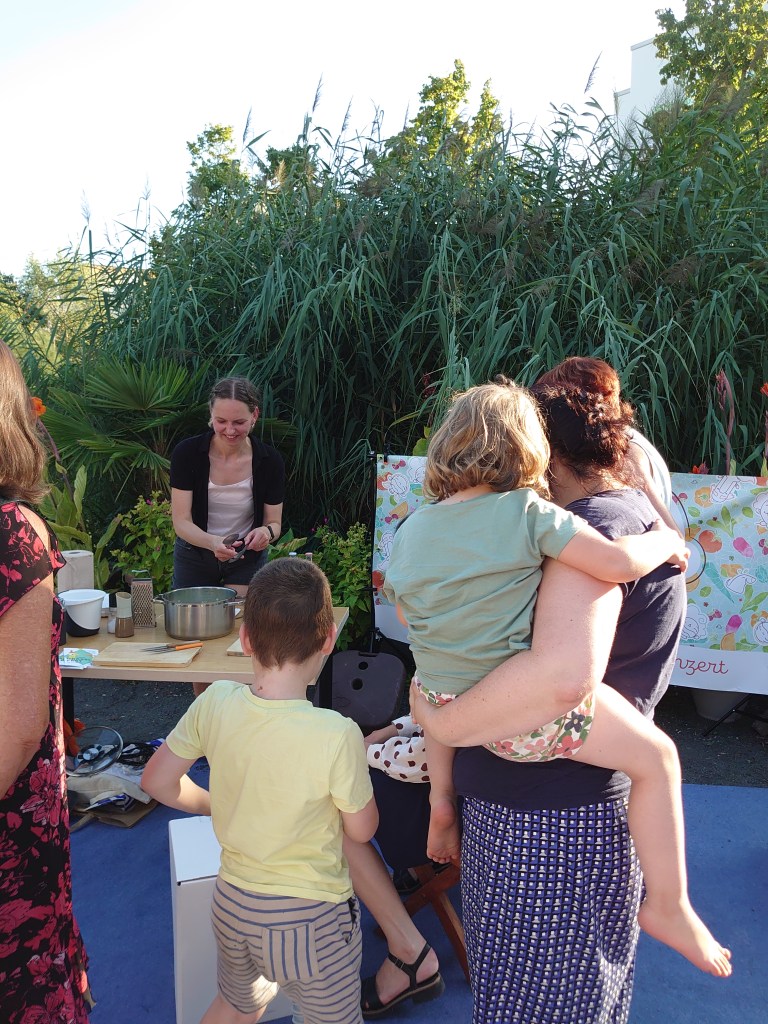Ein abwechslungsreiches Programm war es – und angefangen hat es gleich mit einer kulinarischen Reise zu Kafka: Mit Juliane haben wir Risi e Bisi gekocht – ganz nach Kafkas Geschmack, vermutlich: das Rezept stammt aus dem Hygienischen Kochbuch „Zum Gebrauch für ehemalige Kurgäste von Dr. Lahmanns Sanatorium auf Weisser Hirsch bei Dresden“ von Elise Starker. Im Anschluss daran konnte, wer wollte, gemeinsam mit Antje Kafkaeske Figuren – Odradek, Gregor Samsa, forschende Hunde – lebendig werden lassen und mit Yuri verschiedene Flöten erkunden.