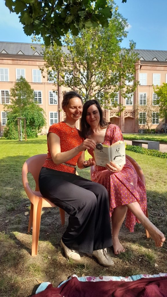 Es war mir eine besondere Freude, im Klangatelier vom 10. Oktober gemeinsam mit der Dirigentin und Pianistin Eva Meitner über die Klangwelt einer Dichterin zu sprechen. Dabei erklang so manches – Worte und Musik von Annette von Droste-Hülshoff etwa, Gedichte von Sappho, Anna Louisa Karsch und Hilde Domin und ein Gedicht aus meiner Hand – ›in silber verbunden‹ –, das sich von einem Objekt der Ausstellung der Völkerkunde hat inspirieren lassen.