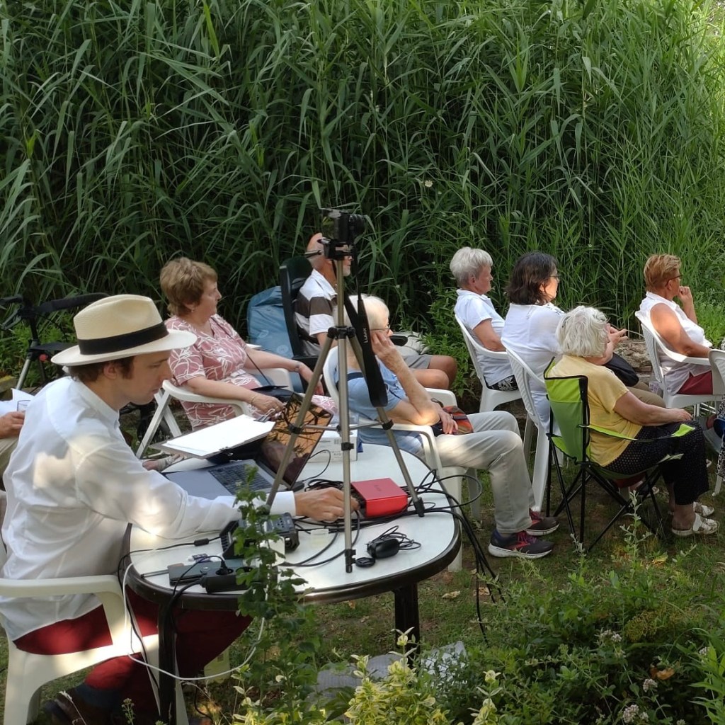 Was tun bei 33 Grad? Richtig: Am Abend in eine wunderschöne grüne Oase gehen, sich’s bequem machen und Kafkaesken Klängen lauschen .